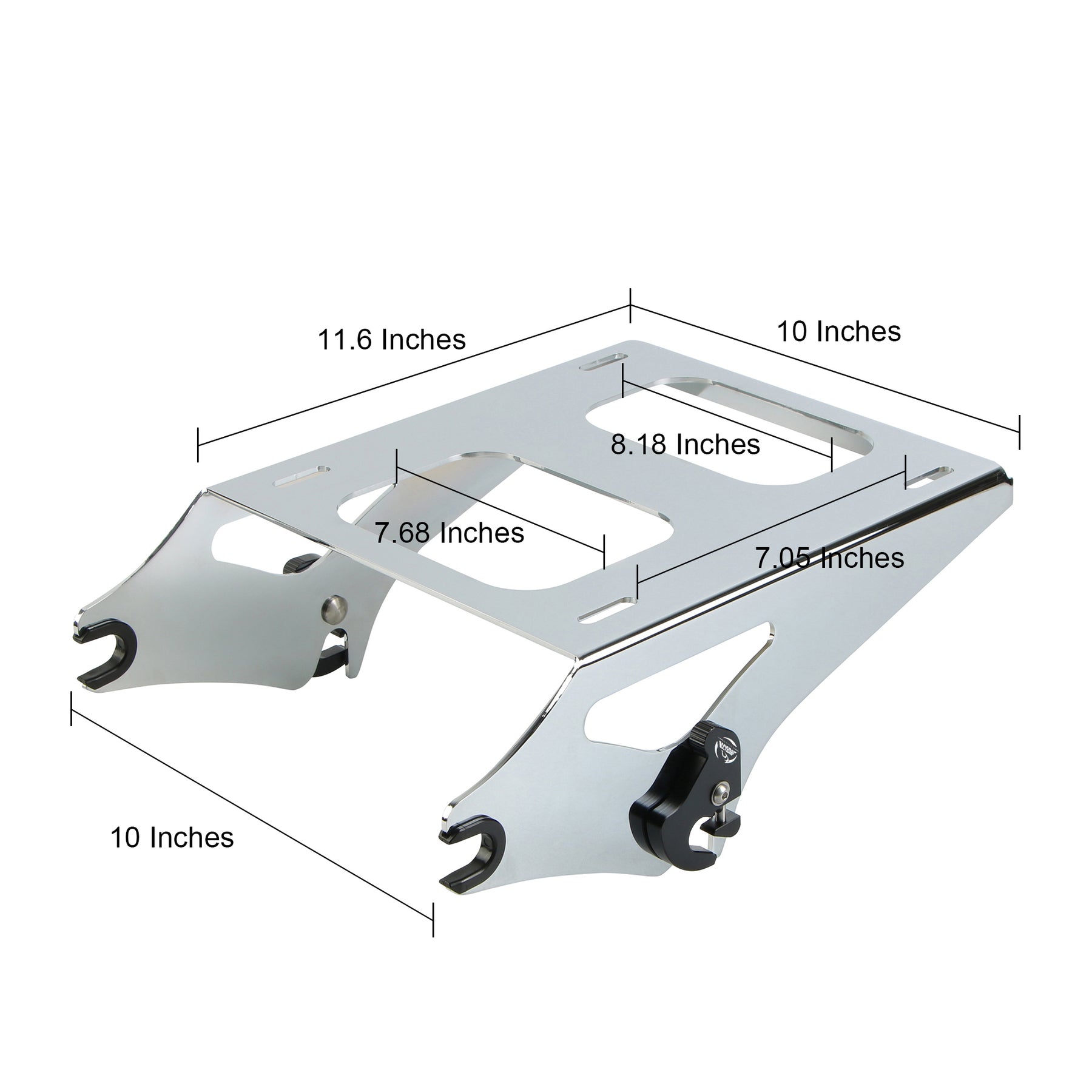 - Package Includes: 1x Black or Chrome Detachable Two-Up Luggage Rack and Mounting Screw Set. (Note: Instruction manual not included)